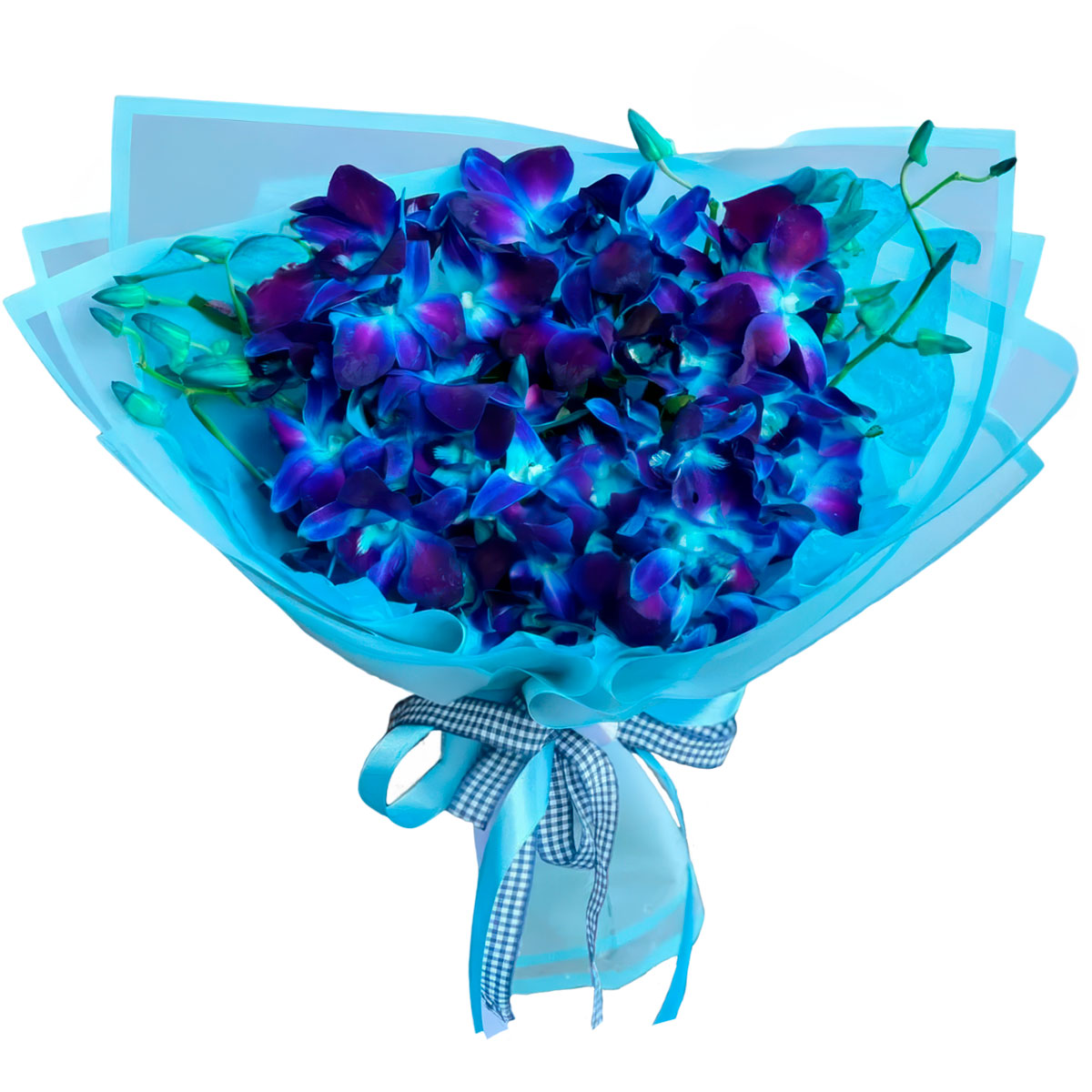 Дендробиумы синие. Упаковка (лента, пленка, крафт, сетка, пленка матовая)