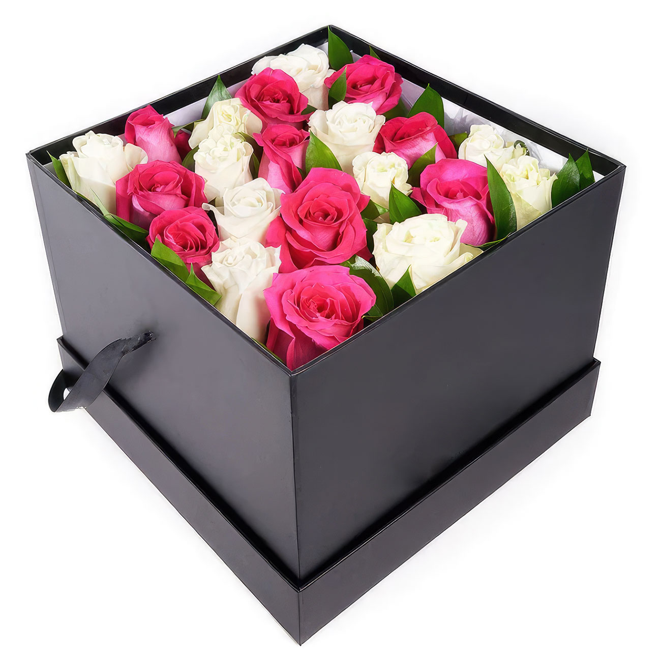 Роза одноголовая розовая, белая. Упаковка (шляпная коробка, квадратный бокс, коробка сердце, оазис)