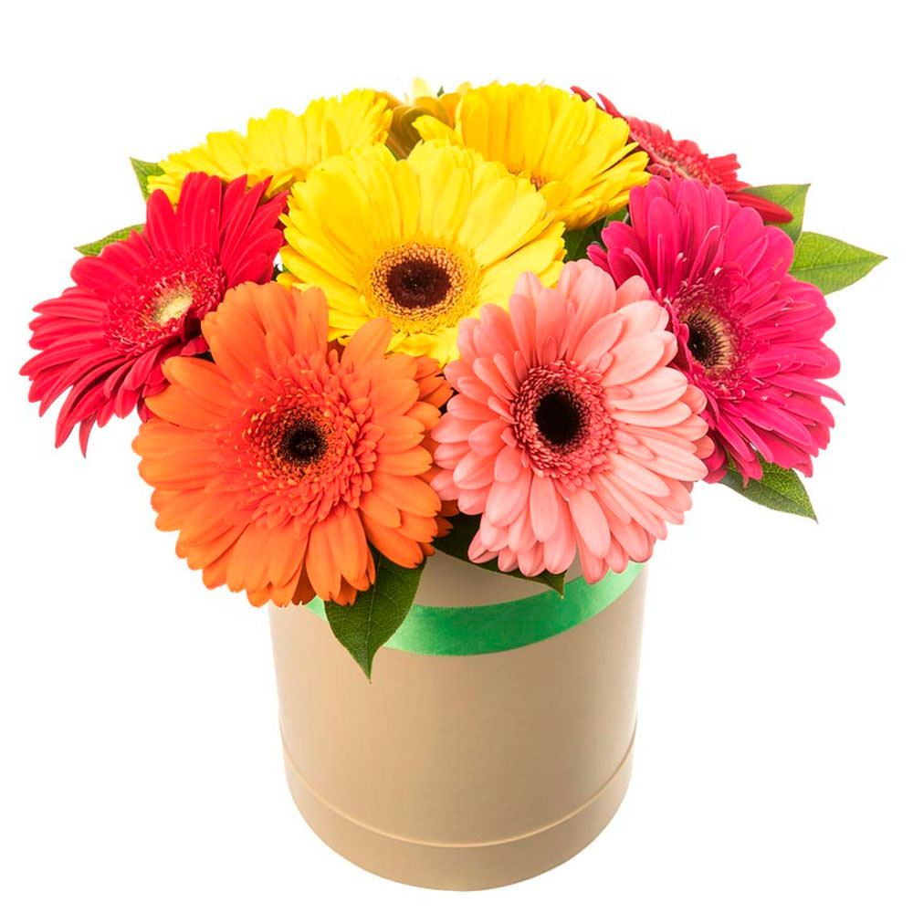 Цветы в коробке «Микс гербер» с доставкой по г Краснодар: вы можете купить букет в цветочном гипермаркете «Флормания» по цене от 2799 руб.