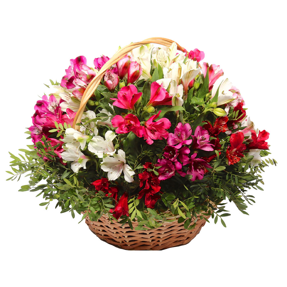 Цветы в корзинке «Краски альстромерий» с доставкой по г Краснодар: вы можете купить букет в гипермаркете цветов «Флормания» по цене от 3499 руб.